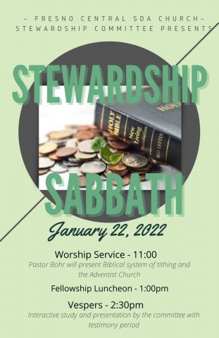 11:00am - worship service on the topic of Stewardship and given by Pastor Stephen Bohr.